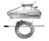 Rope winch (Tirfor). A one person operated manual winch which can be used to pull stumps or heavy objects horizontal.