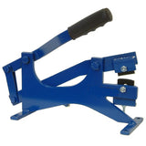 Manual tool used for shaping cement roof tiles. Allows cuts to be made for valleys, etc.